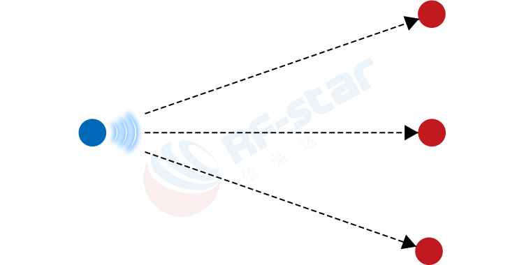 Rede Bluetooth Mesh Um-para-Muitos: Utiliza uma abordagem de gerenciamento de rede do tipo "inundação". Cada nó que recebe uma mensagem a encaminha, retransmitindo-a por meio de outros nós até que o nó de destino a receba. Teoricamente, uma rede pode acomodar dezenas de milhares de nós, permitindo a comunicação de muitos para muitos. No entanto, a rede é complexa e o consumo de energia e a latência são difíceis de controlar.
