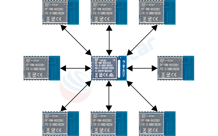 Conexão tradicional de um para muitos: Normalmente, refere-se a um host que se reveza na manutenção de conexões com algumas dezenas de dispositivos escravos por meio de multiplexação por divisão de tempo. O número é limitado e a complexidade de gerenciamento aumenta significativamente com a quantidade de dispositivos.